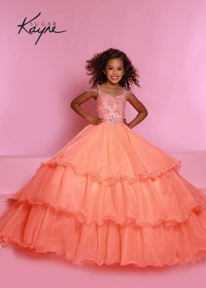 Sugar Kayne by Johnathan Kayne is a delightful line of formal and pageant dresses designed especially for little girls and tweens. Each gown features sparkling embellishments, playful details, and age-appropriate silhouettes that combine charm with elegance. From twirling ball gowns to pretty A-line dresses, Sugar Kayne dresses are made to make young girls feel confident, radiant, and ready to shine on any special occasion. Available at trusted retailers like ours, these dresses bring Johnathan Kayne’s signature glamour to the next generation of style stars.